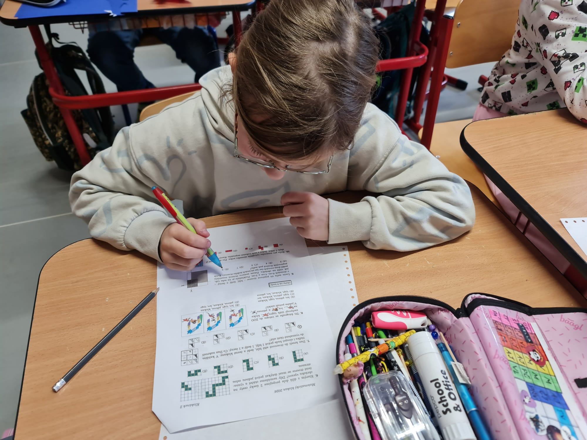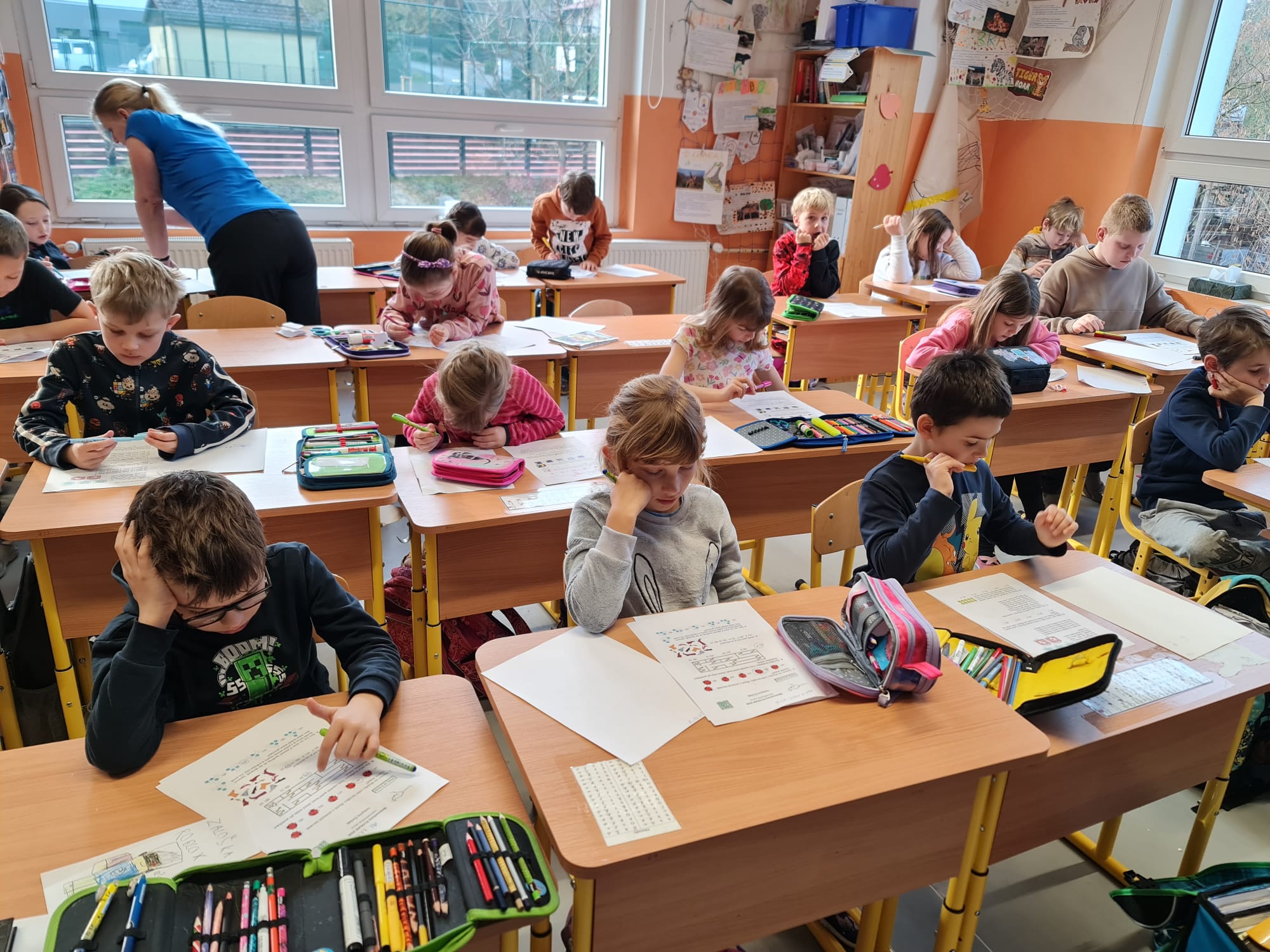 Dneska ráno se první vyučovací hodinu (60 minut) žáci z 1.–5. ročníku zapojili do oblíbené mezinárodní soutěže Matematický klokan. Děti si mohly vyzkoušet své logické myšlení, postřeh i schopnost řešit netradiční matematické úlohy. Žáci 1.–3. ročníku soutěžili v kategorii Cvrček, zatímco starší děti ze 4. a 5. ročníku poměřily své síly v kategorii Klokánek. Všichni soutěžící se s úlohami statečně poprali a mnozí z nich byli příjemně překvapeni, že matematika může být i zábavná a hravá.
